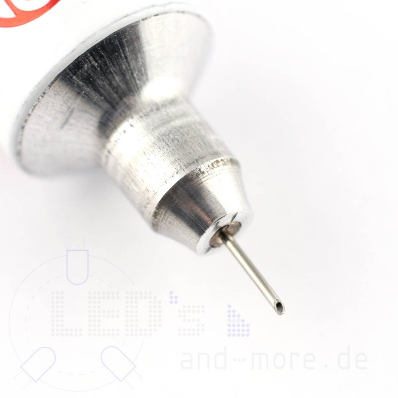 Durch die dünne Dosiernadel kann man winzige Mengen hochpräzise entnehmen und auftragen.